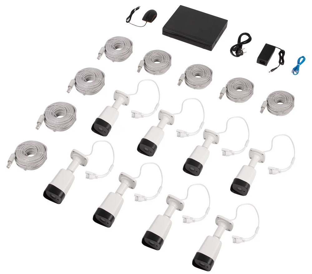 Комплект видеонаблюдения из 8 камер POe, разрешением до 5Мп с регистратором Konan Serpi С1 (без жесткого диска). В комплекте есть все необходимое для подключения к регистратору до 8 камер.