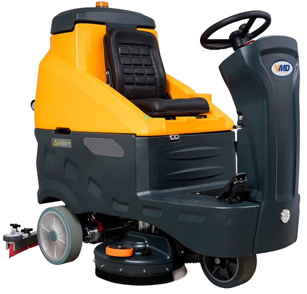 Машина поломоечная VMD F130 BT80 — профессиональное уборочное оборудование повышенной мощности с местом для оператора и аккумуляторным приводом, специально разработанное для работы на крупных объектах с высокой проходимостью.