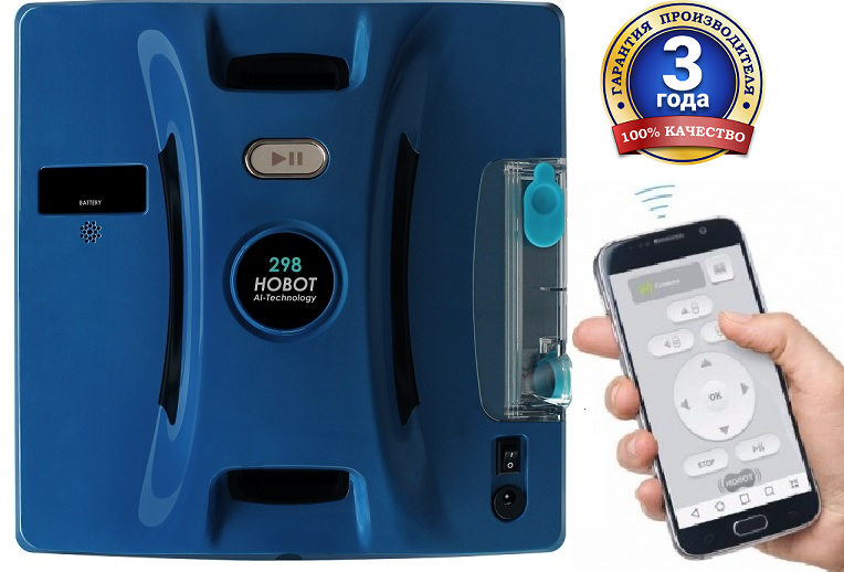 Оснащенный аккумулятором Hobot 298 защищен от падения при перебоях электроэнергии. Он будет удерживаться на стекле и звать Вас на помощь)