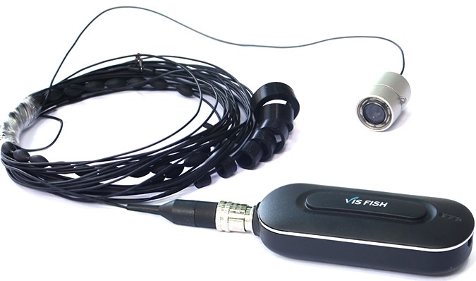 Легкая миниатюрная видеокамера для рыбалки VSH 4 (всего 2 грамма!) с разрешением 2 Мп транслирует видео через комплектный Wi-Fi-модуль на мобильное устройство на базе Android или iOS. Снабжена широкоугольным (140°) объективом, сохраняет водонепроницаемость на глубине до 30 м, имеет 8 ИК-светодиодов для качественной съемки в мутной воде и в ночное время. Поддерживается сохранение видео на карту памяти MicroSD. Питание камеры осуществляется от емкого 1300 мАч аккумулятора, заряда которого хватает на 3 часа работы. В комплекте идет специальный кронштейн, поплавок, катушка и 9 силиконовых колец для фиксации кабеля на спиннинге.